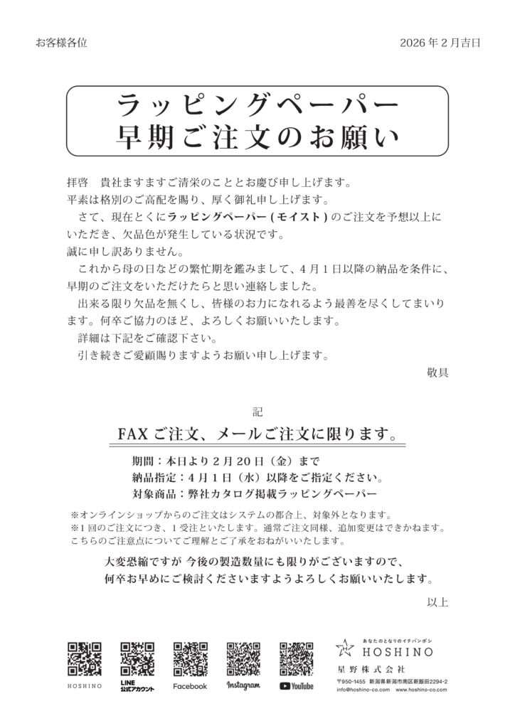 さて、現在とくにラッピングペーパー(モイスト) のご注文を