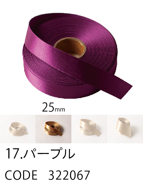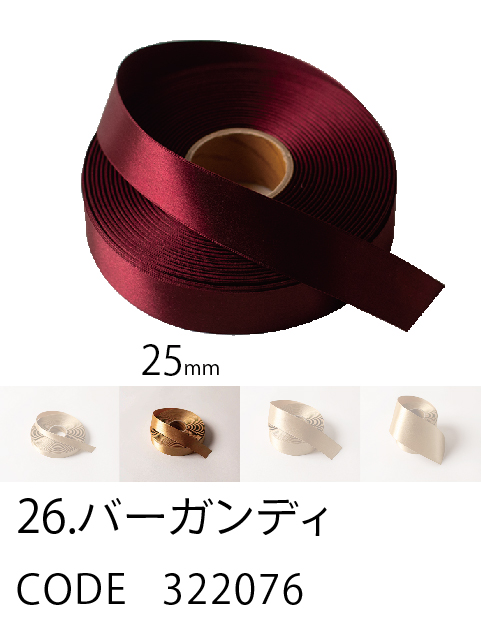 高級感/ カラーバリエーション/ 価格を兼ね備えたスタンダード。 ループがつくれるハリのあるリボン。57色、4サイズ。 こちらは25mm幅となります。 (イメージ写真は25mm幅となります)