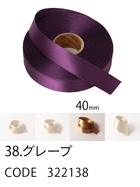 高級感/ カラーバリエーション/ 価格を兼ね備えたスタンダード。 ループがつくれるハリのあるリボン。57色、4サイズ。 こちらは40mm幅となります。 (イメージ写真は25mm幅となります)