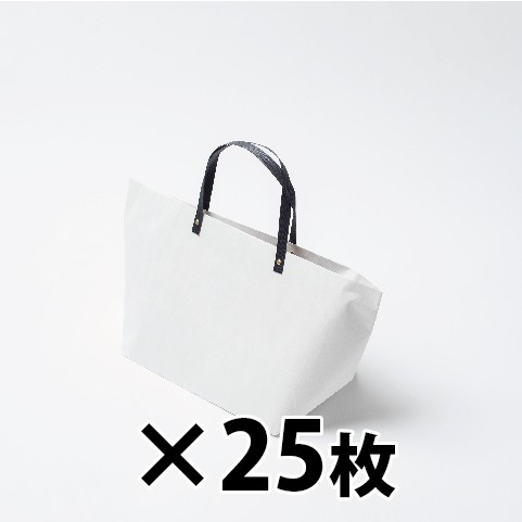 ホワイトクラフト紙を使用した舟形のバッグ。持ち手は紙バンドをリベット止め。 JMサイズ。 ※25枚1p/c単位での販売価格となります。 ※100枚1箱単位のご注文は、こちらをクリックして下さい。