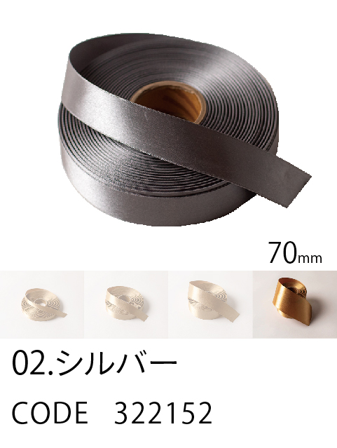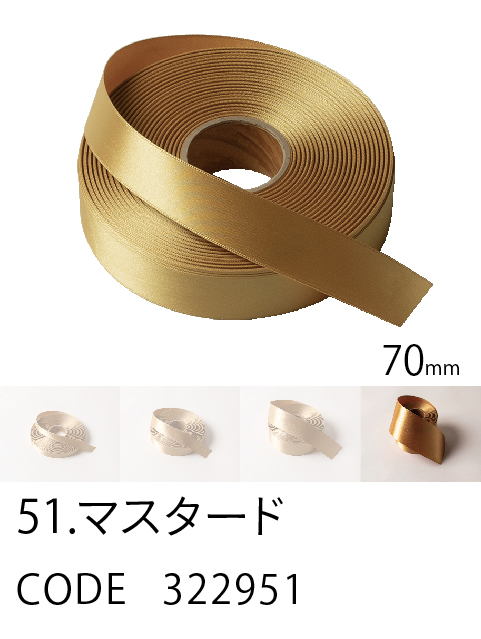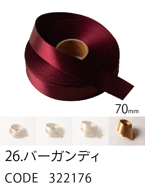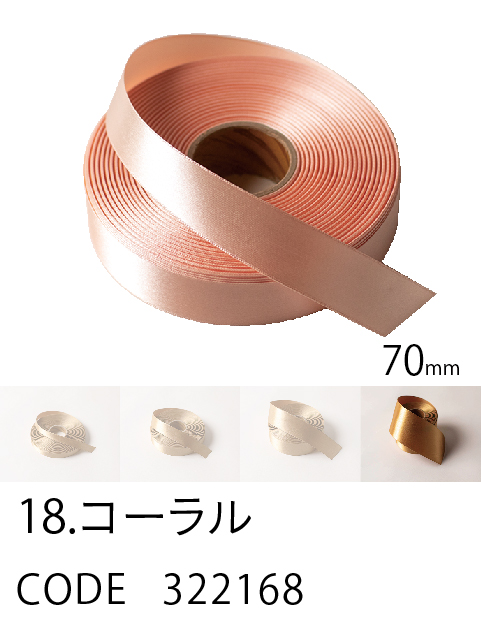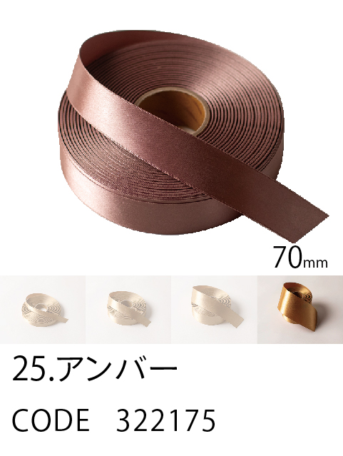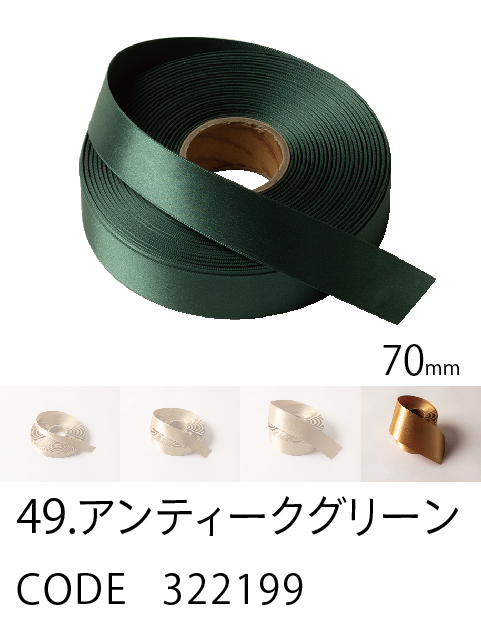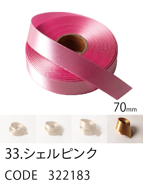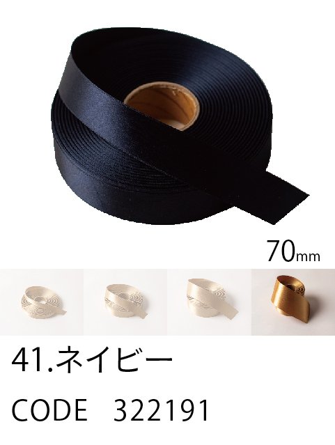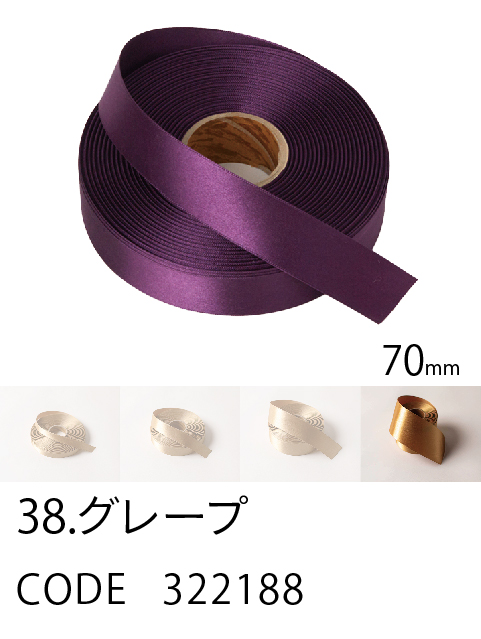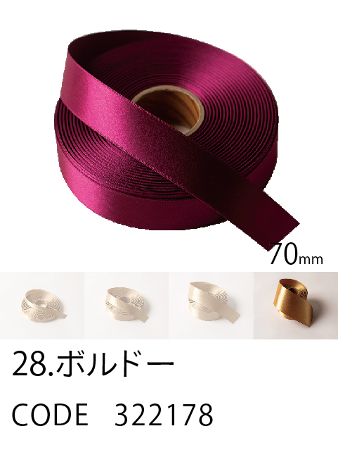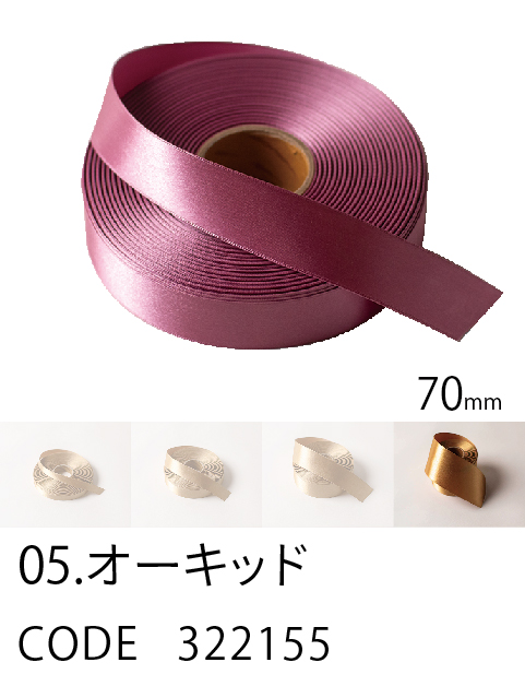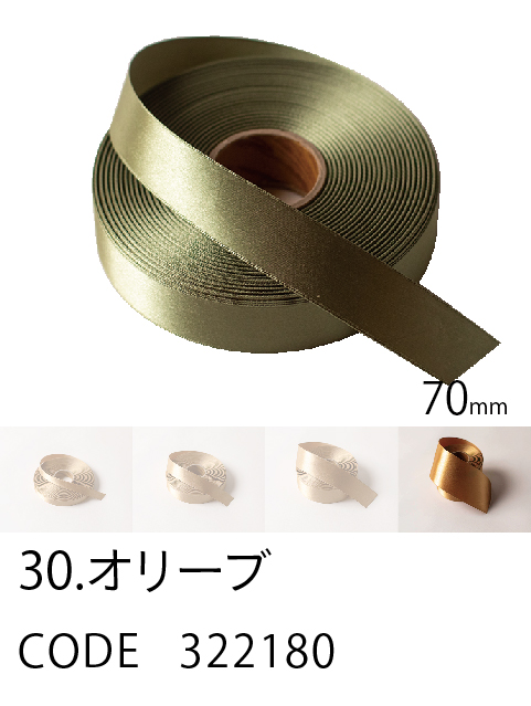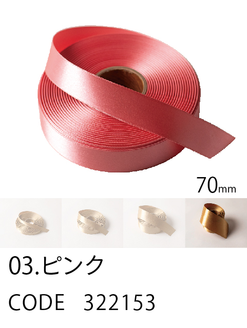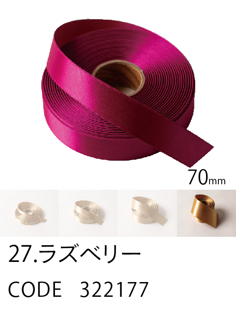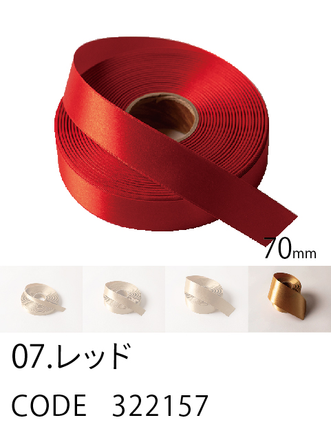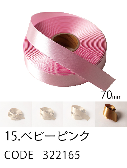 高級感/ カラーバリエーション/ 価格を兼ね備えたスタンダード。 ループがつくれるハリのあるリボン。57色、4サイズ。 こちらは70mm幅となります。 (イメージ写真は25mm幅となります)
