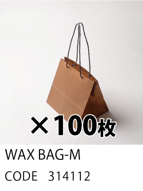 クラフト紙のナチュラルな風合いをいかしながらWAXコーティング。耐水性や丈夫さが自慢のシンプルなバッグです。 Mサイズ。 ※100枚1c/s単位での販売価格となります。 ※25枚1p/c単位のご注文は、こちらをクリックして下さい。