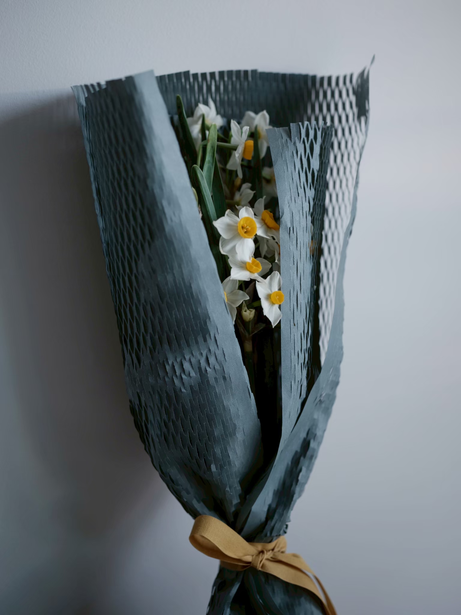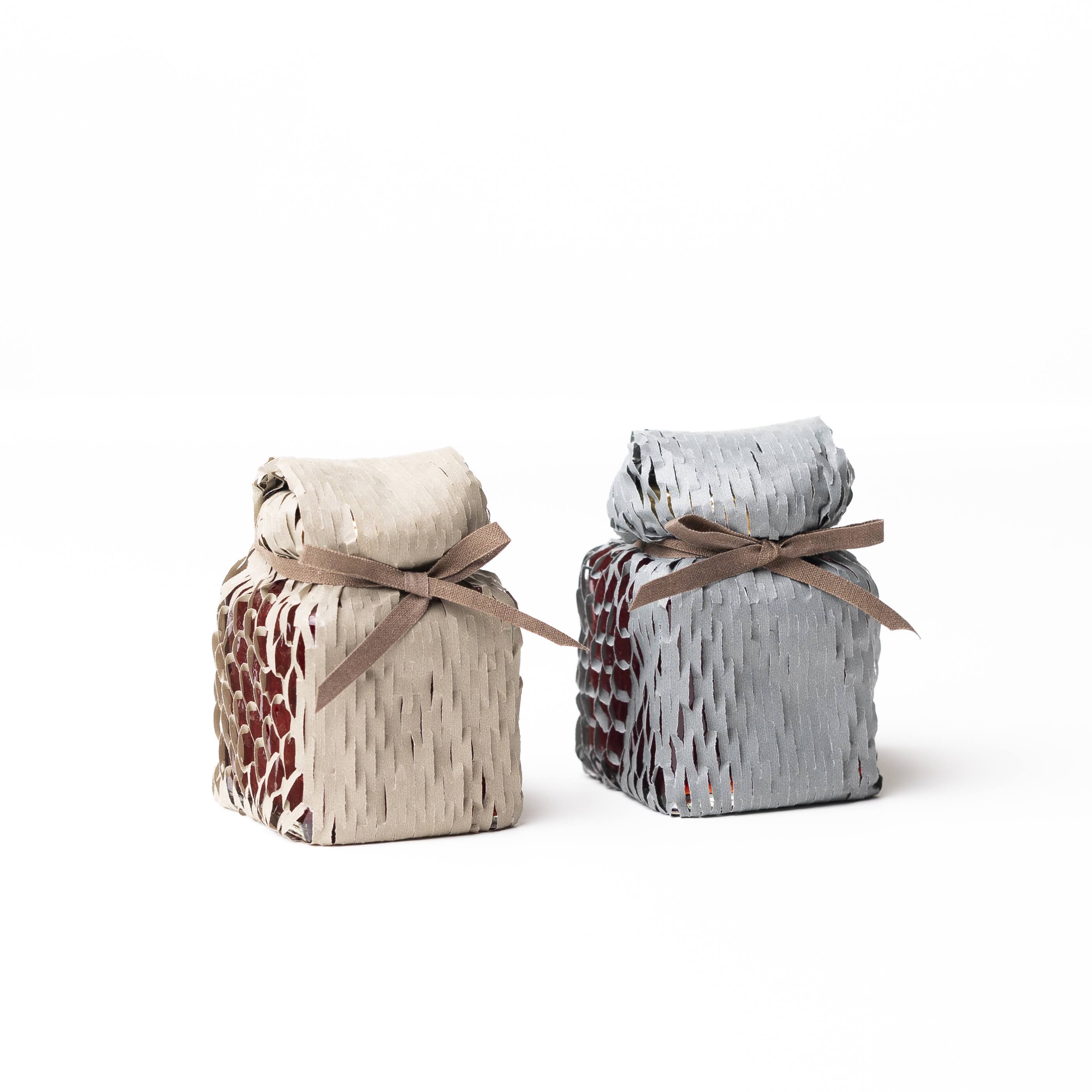両面印刷した紙に撥水加工を施した「パリ」に、スリット加工を加え、クッションペーパーに仕上げました。